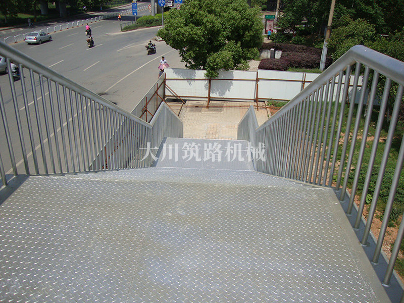 特點(diǎn):本鋼橋主梁采用標(biāo)準(zhǔn)的“321鋼橋”現(xiàn)場安裝并用朔板包邊,梯道用型鋼、鋼板在廠內(nèi)加工好現(xiàn)場拼裝,達(dá)到安裝便捷、美觀、舒適的要求。本鋼橋安裝工期緊,安裝條件有限,大都只能得用晚間在封鎖交通的情況下安裝。